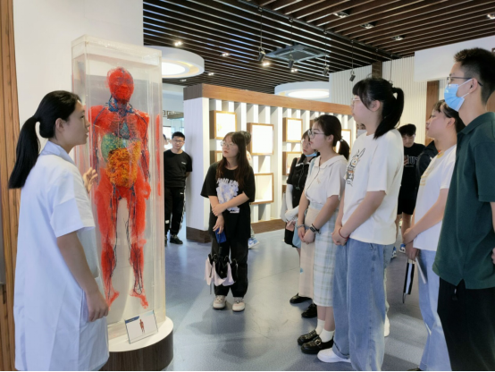 走进人体科学馆,同学们以敬畏之心紧随讲解员的节奏聆听讲解。展馆通过现代数字信息科技与传统展示相结合的方式,让同学们在参观学习的过程中从大体与微观、基础与临床、科学与人文等不同角度来感受人体形态之美,增强了为生命健康创新创业的感情。