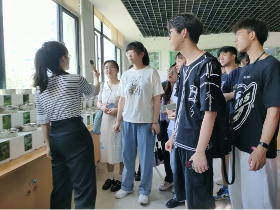 进入中药资源中心,扑面而来的中草药气味激发了同学们的学习兴趣。解说员带领大家参观了中药材性状辨识馆、安徽道地药材馆、中药材馆、本草馆、腊叶标本馆和中药饮片标本馆等,由点到面,从单味药的特性、辨识、功效等,到安徽省十大皖药的详细介绍,让实验班同学们全面了解安徽省的中药资源优势以及我校对中药资源普查、研究和使用等情况。同时,也向大家普及了许多药材检验、采集和保存的方法,所见、所闻、所学让大家感受到我国的中医药文化源远流长,启发了创新创业灵感。
